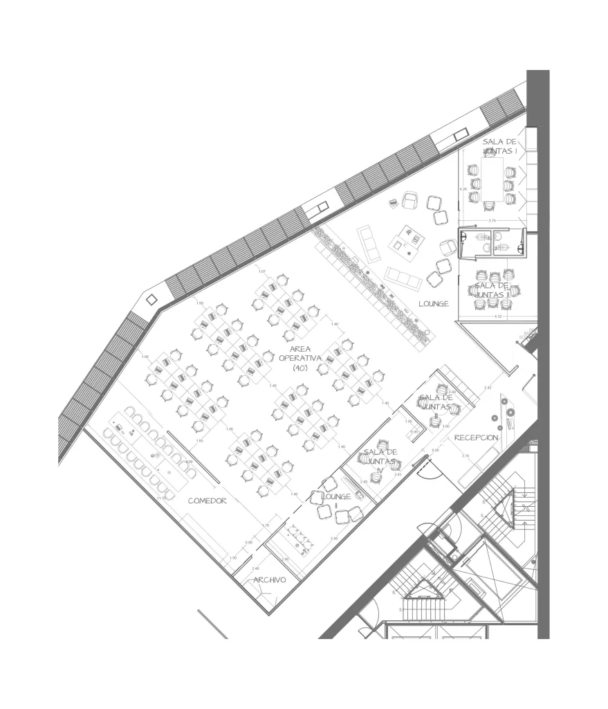 El enfoque en sostenibilidad y eficiencia energética se integra con materiales y soluciones inteligentes, garantizando estándares internacionales para corporaciones globales. La ubicación estratégica de este corporativo en uno de los edificios más emblemáticos de Latinoamérica nos permitió generar uno de los proyectos arquitectónicos de alto impacto en entornos urbanos, donde el diseño de interiores personalizado se combina con tecnología para planificar cada detalle.