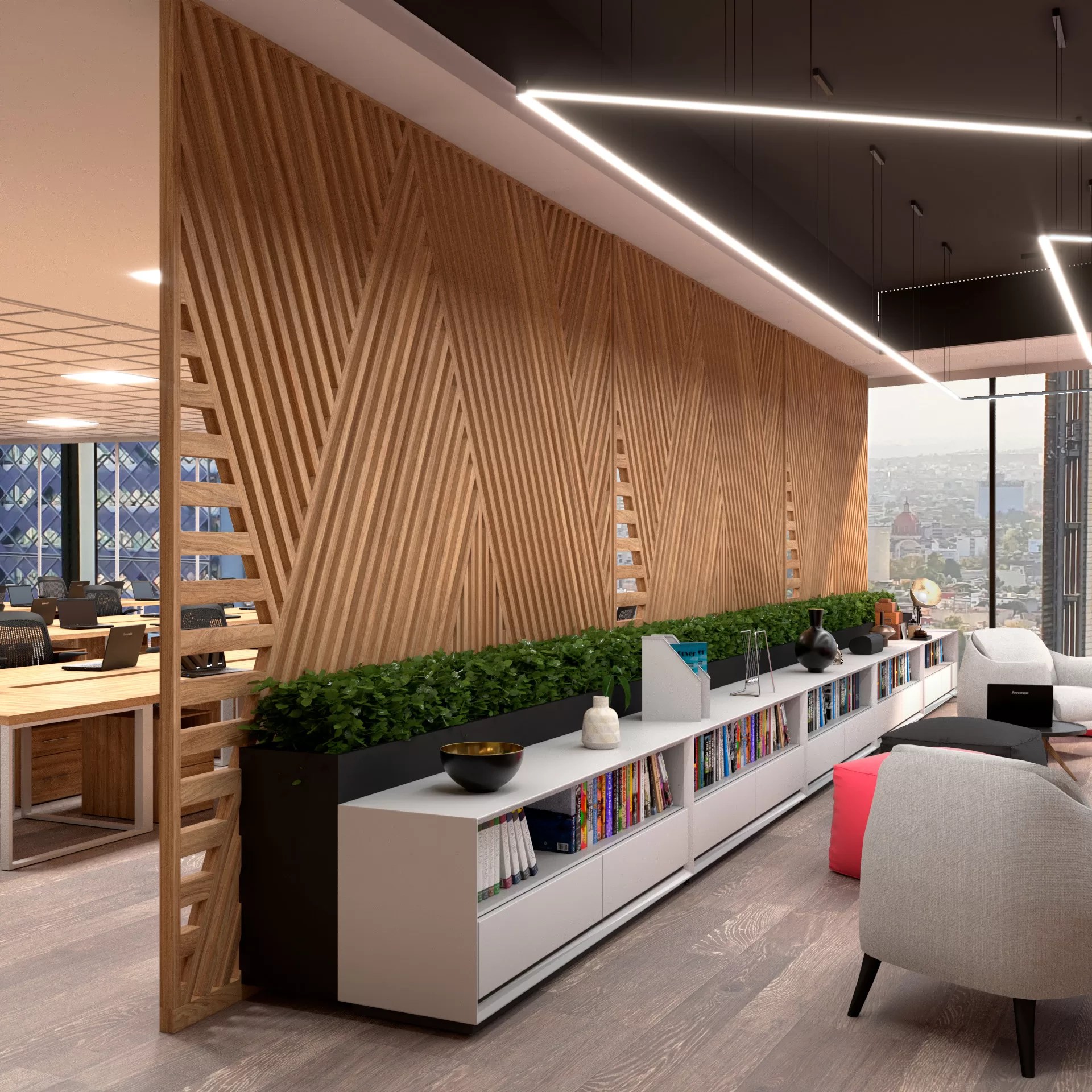 A+E Studio que se dedica a la creación de espacios corporativos a medida, ofrecemos un servicio integral que abarca desde la consultoría en diseño arquitectónico hasta la ejecución de obras para su certificación LEED, adaptando soluciones para startups, pymes y multinacionales. Este caso de éxito consolida nuestra presencia en arquitectura innovadora y diseño de interiores transformacional en México.