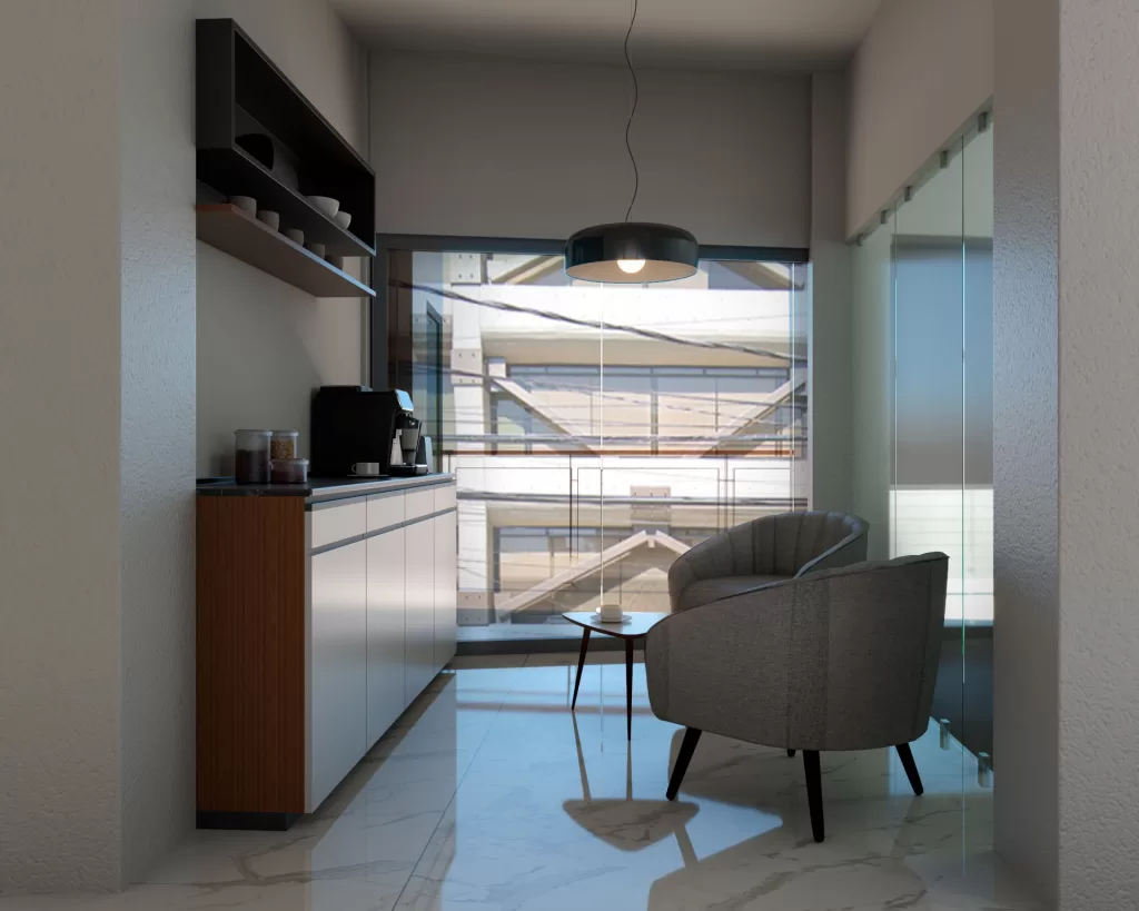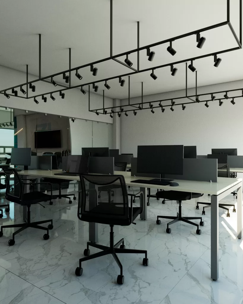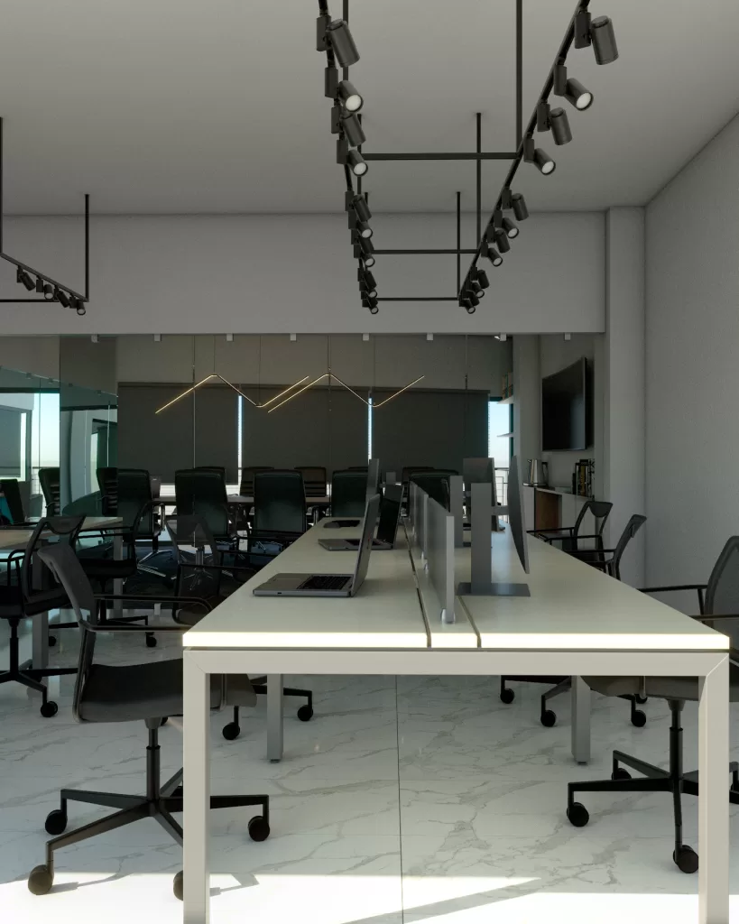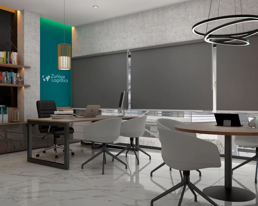 A+E Studio con la propuesta arquitectónica prioriza la flexibilidad: zonas multifuncionales que evolucionan según las necesidades del equipo. Materiales como madera en tonos cálidos, superficies vidriadas que maximizan la luz natural y paletas cromáticas alineadas a la identidad corporativa generan un ambiente profesional pero acogedor. Elementos clave incluyen salas de reuniones híbridas (equipadas para conexiones remotas), espacios focus para concentración individual y áreas lounge informales que fomentan la interacción espontánea.